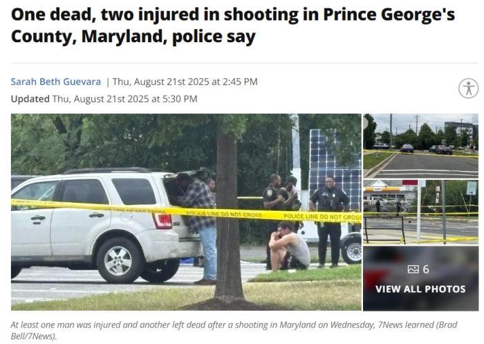 中国新闻局,8月21日。根据福克斯新闻和其他报道的报道,当地时间第20次在美国马里兰州乔治县发生枪击事件,导致一个人死亡,另外两个人受伤。图片来源:福克斯新闻报道的屏幕截图根据报道,枪击事件发生在乔治王子王子县的一个购物中心附近,那里的少年和成人被枪杀。这名少年被送往医院接受治疗,另一名成年人在该地区被枪杀并宣布死亡。根据最新消息,第三名受伤的人在逃离时摔倒和受伤。事件现场,许多炮弹壳散布在高速公路上。警方说,枪击事件正在调查中,今天没有嫌疑人的消息。