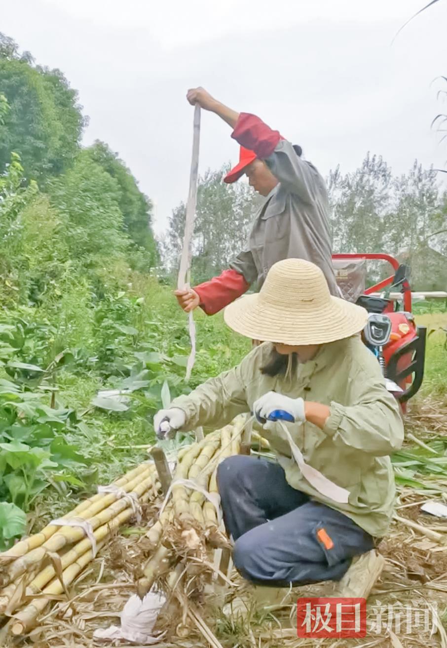 10月16日,在湖北省黄梅粉路镇戴坝村“沾化采摘园”,戴敬和母亲正忙着把甘蔗捆好装上卡车,顾客们赞叹不已,一共订购了100罐糖。